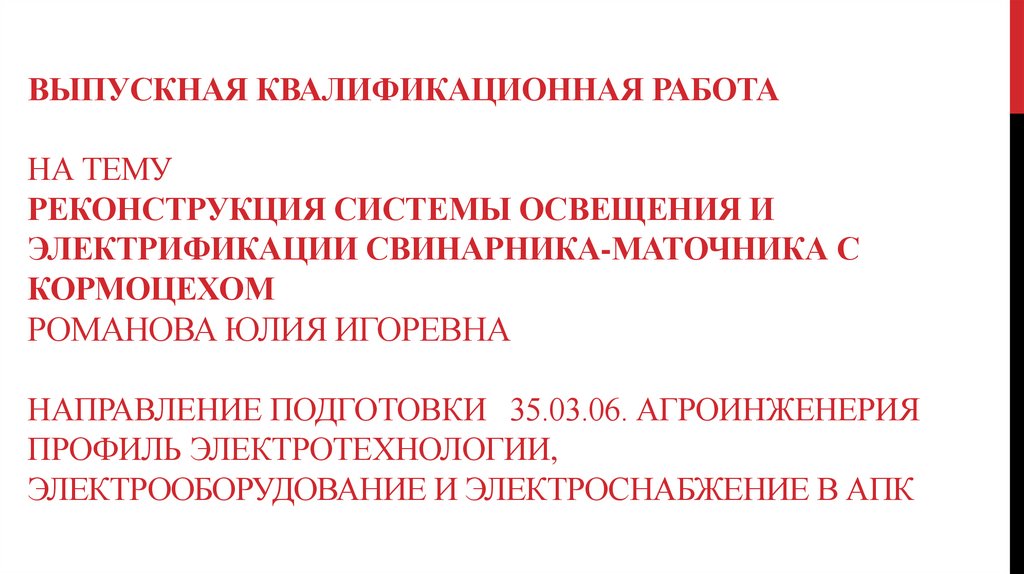 Выпускная квалификационная работа: реконструкция системы освещения и электрификации свинарника-маточника с кормоцехом