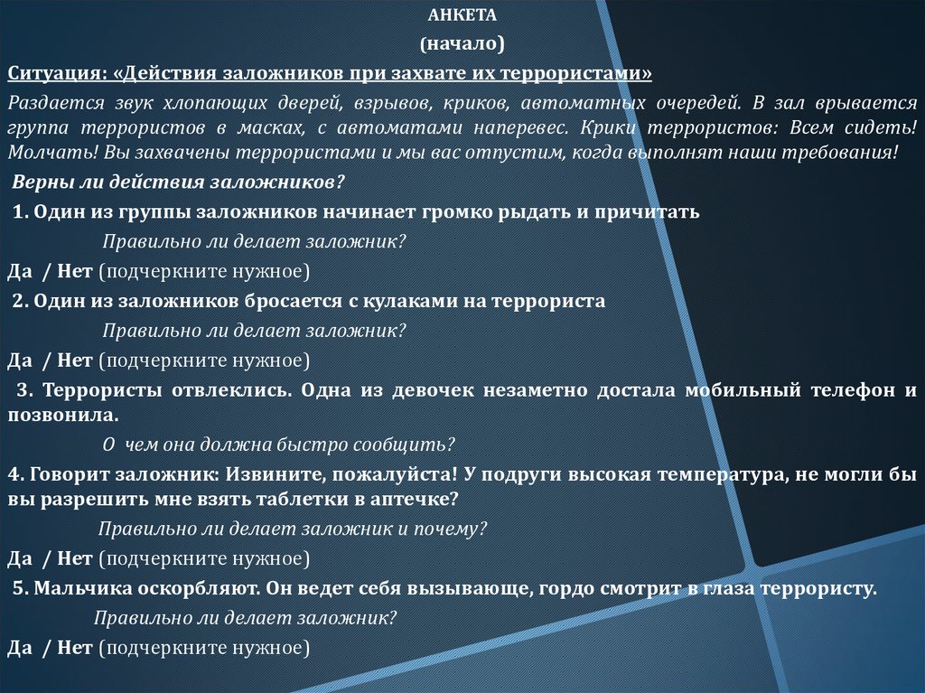 Тренинг: «Если ты - заложник»ТЕРРОРИЗМ –