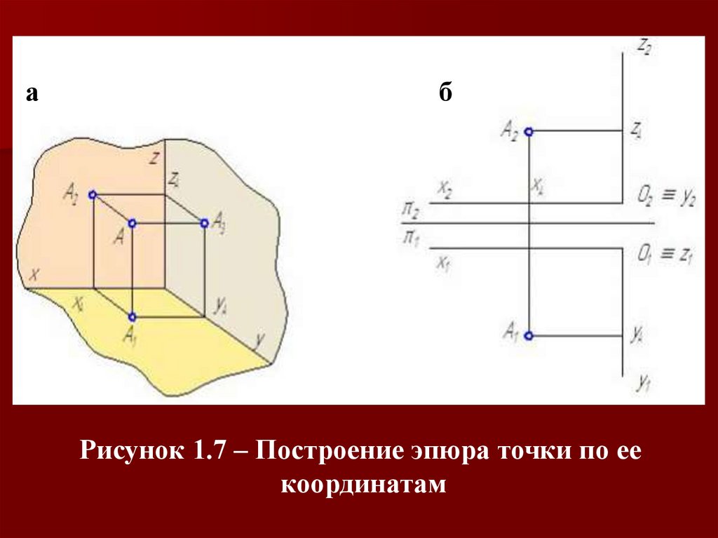 Рисунок 1.7 – Построение эпюра точки по ее