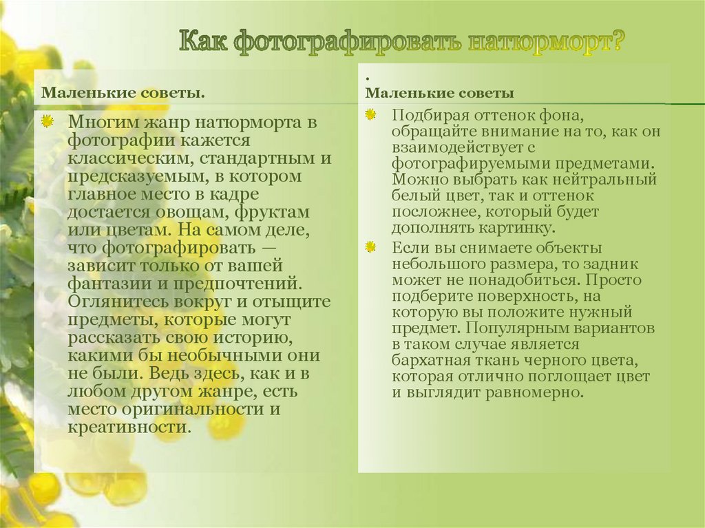 Маленькие советы.Многим жанр натюрморта в