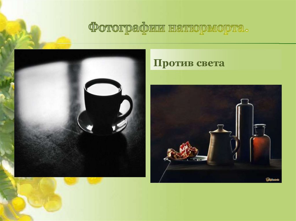Поставить натюрморт.Сделать фото натюрморта против