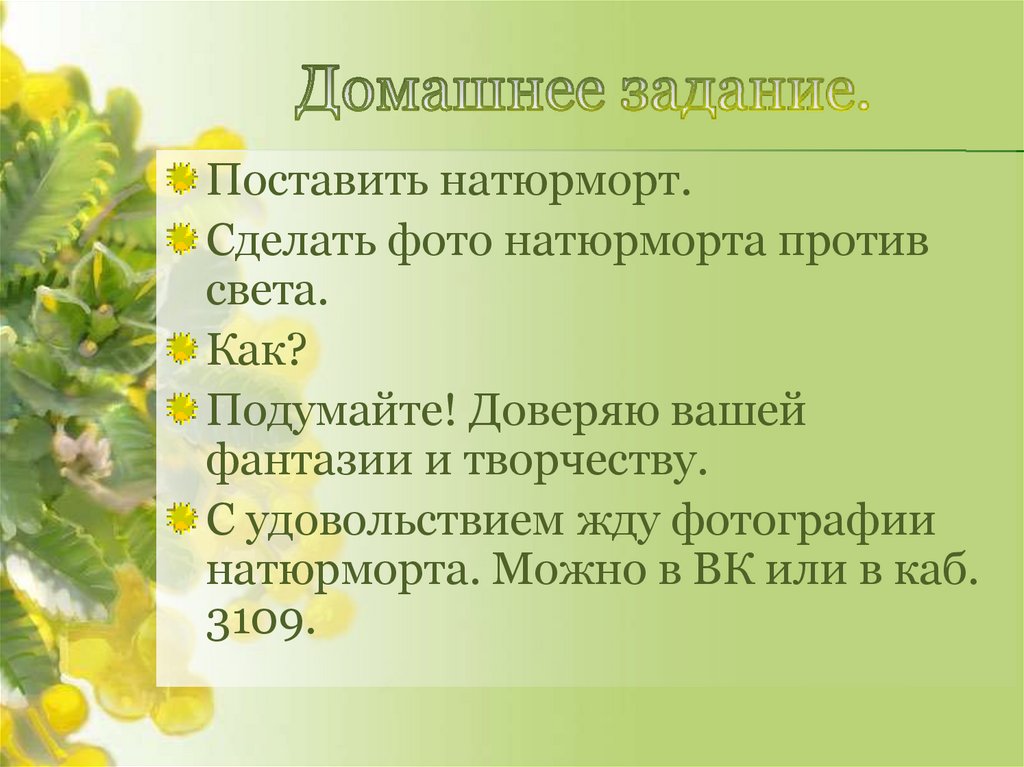 натюрморта. Можно в ВК или в каб.