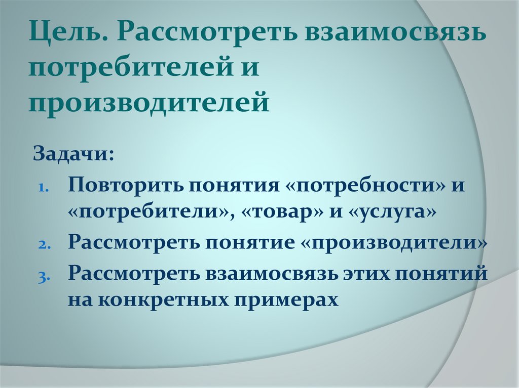 Цель. Рассмотреть взаимосвязьпотребителей и
