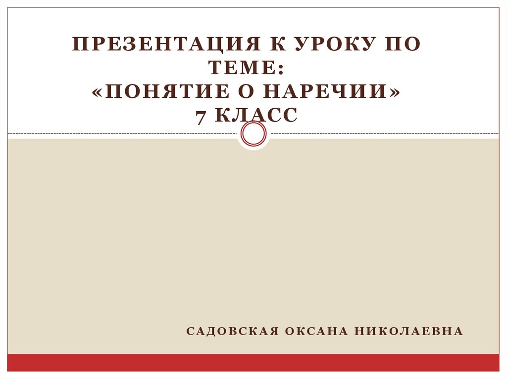 «ПОНЯТИЕ О НАРЕЧИИ»