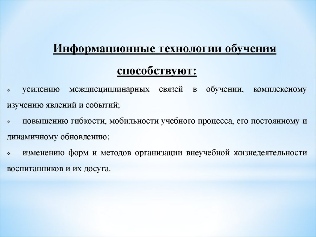 повышению гибкости, мобильности учебного процесса, его постоянному и