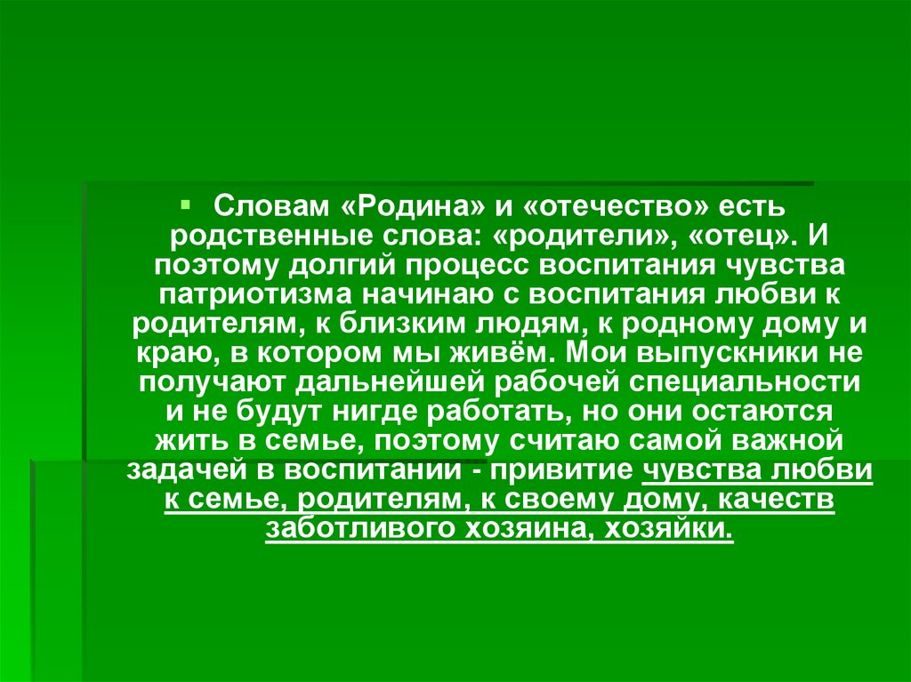 Словам «Родина» и «отечество» естьродственные слова: «родители», «отец». И