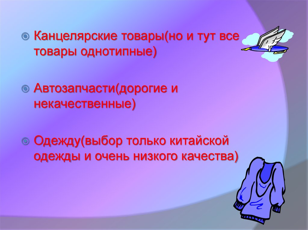одежды и очень низкого качества)