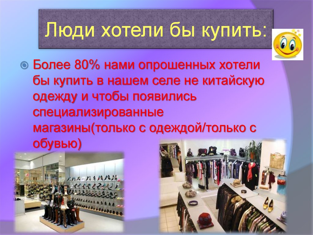 Люди хотели бы купить:Более 80% нами опрошенных хотели
