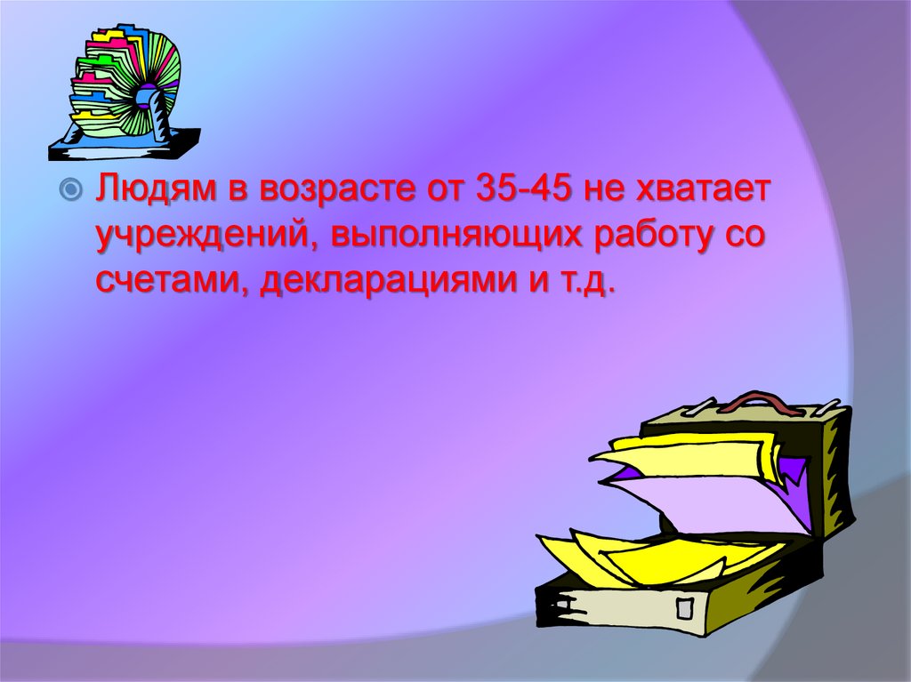 Людям в возрасте от 35-45 не хватаетучреждений, выполняющих работу со