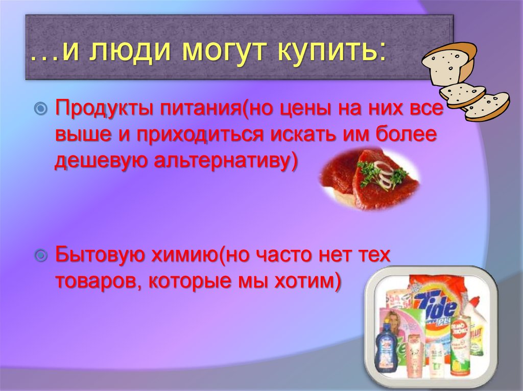 …и люди могут купить:Продукты питания(но цены на них все