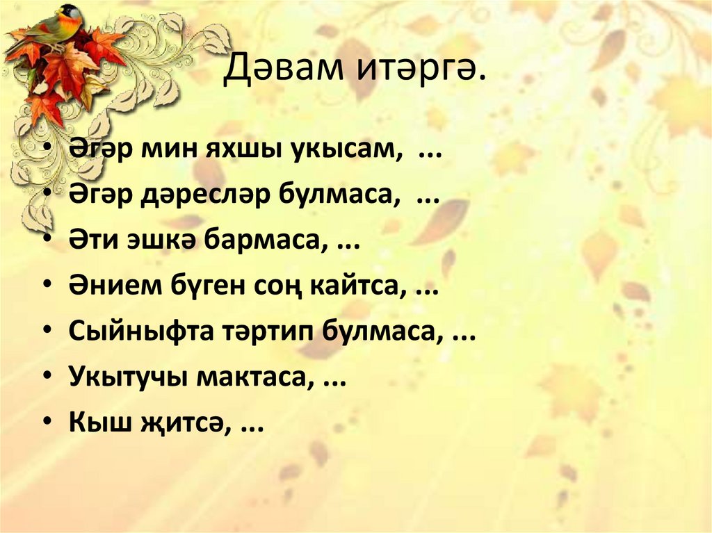 Дәвам итәргә.Әгәр мин яхшы укысам, ...