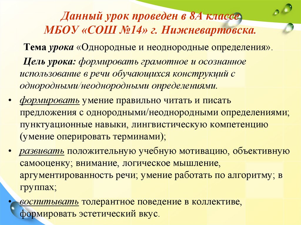 Самоанализ урока по теме «Однородные и неоднородные определения»