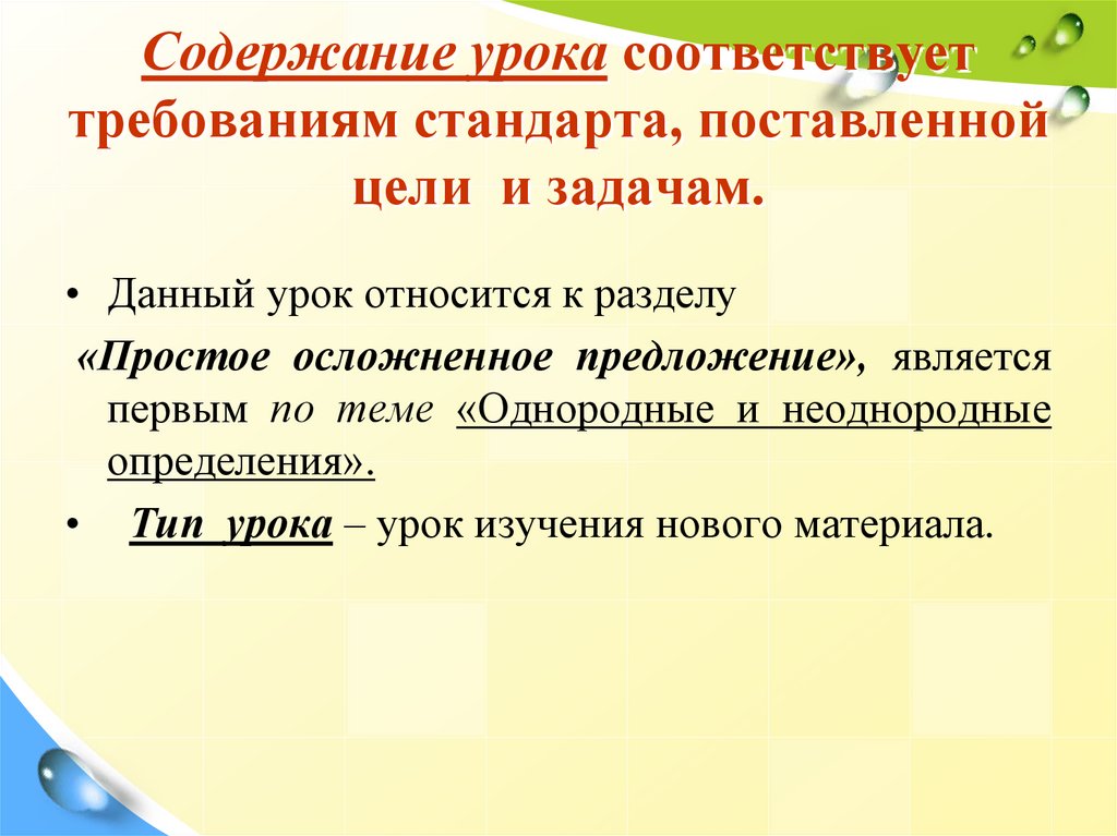 Содержание урока соответствуеттребованиям стандарта, поставленной