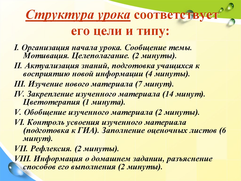 Структура урока соответствуетего цели и типу: