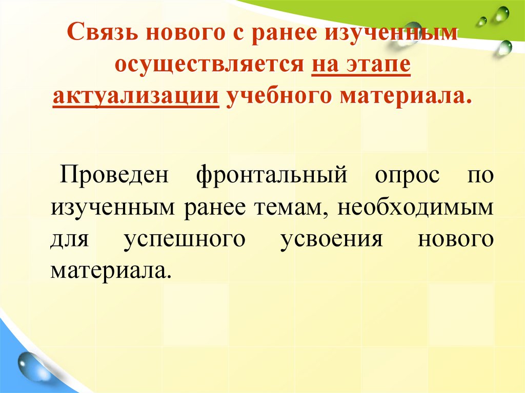 Связь нового с ранее изученнымосуществляется на этапе