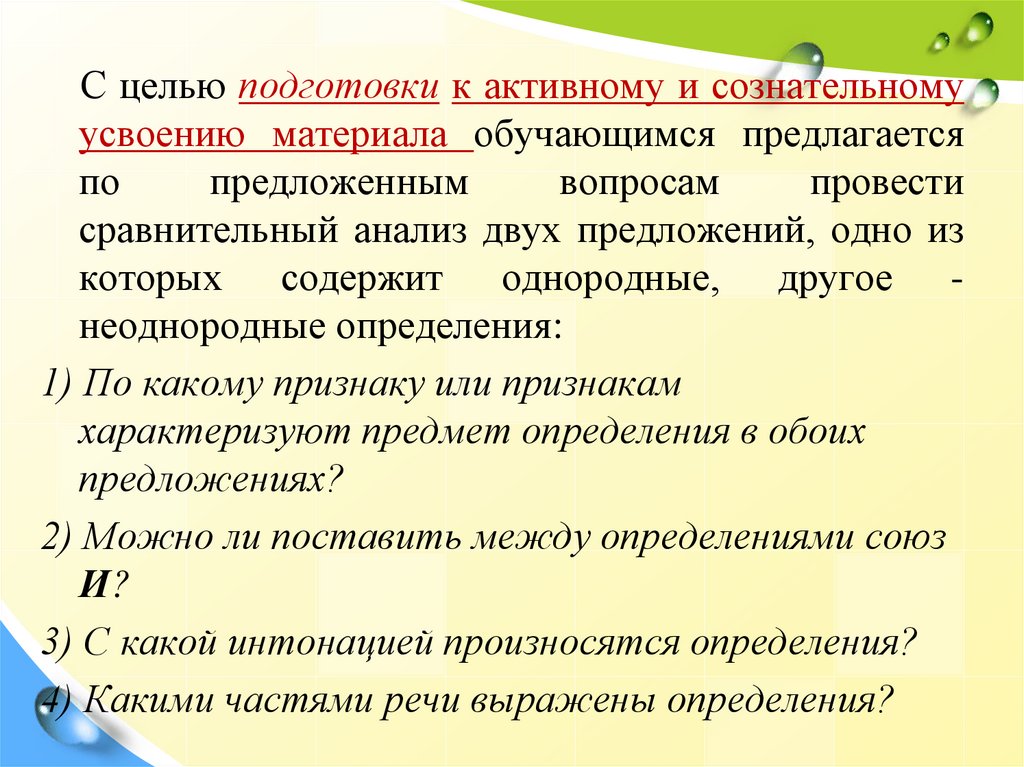 С целью подготовки к активному и сознательномуусвоению материала обучающимся предлагается