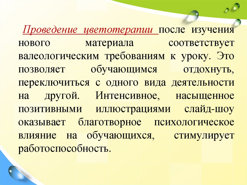 Цветотерапия (1 минута).