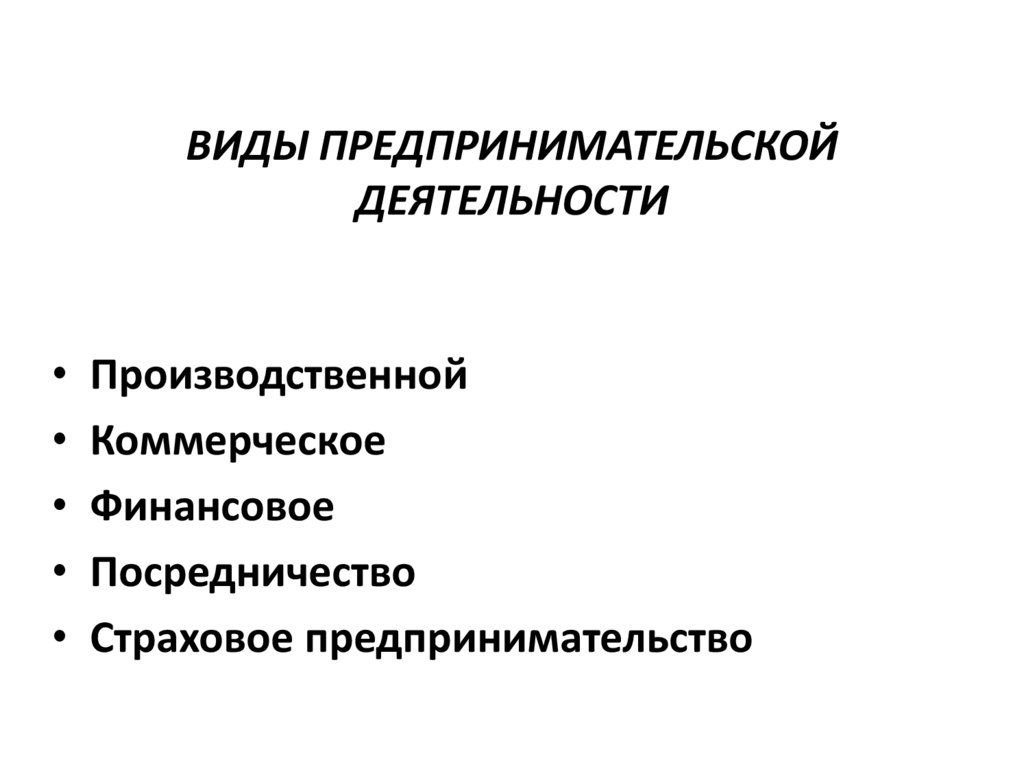 ВИДЫ ПРЕДПРИНИМАТЕЛЬСКОЙДЕЯТЕЛЬНОСТИ