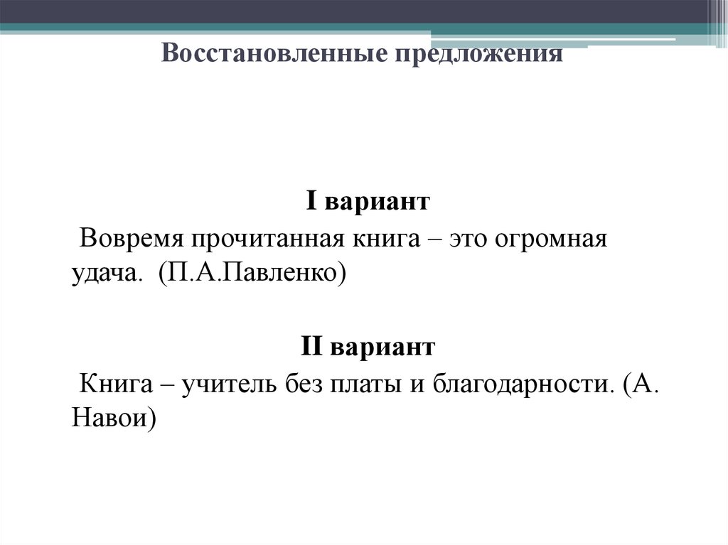 Восстановленные предложенияI вариант