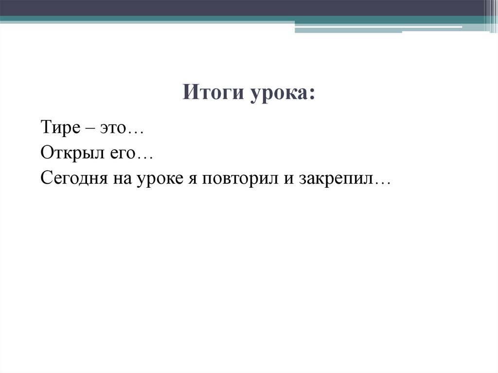 Итоги урока:Тире – это…