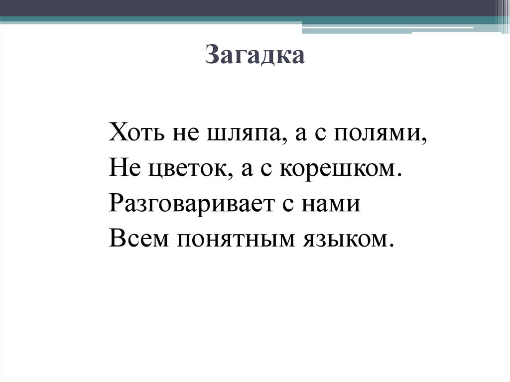 ЗагадкаХоть не шляпа, а с полями,