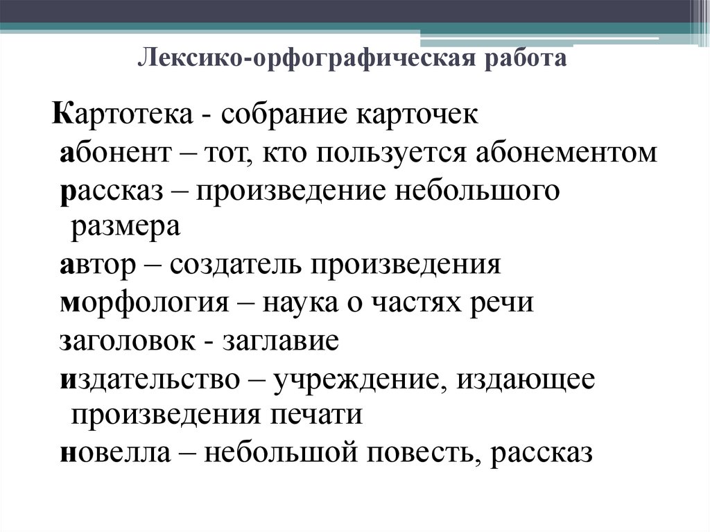 Лексико-орфографическая работаКартотека - собрание карточек