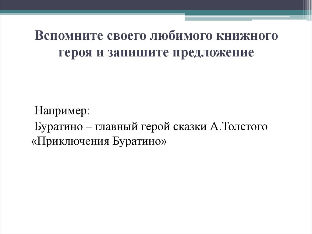 Вспомните своего любимого книжногогероя и запишите предложение