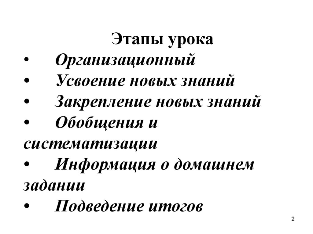 Этапы урока• Организационный