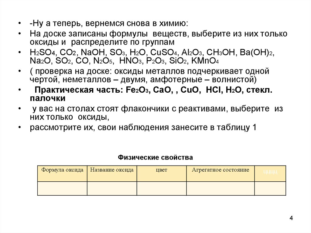 оксидов: (методички на столах)