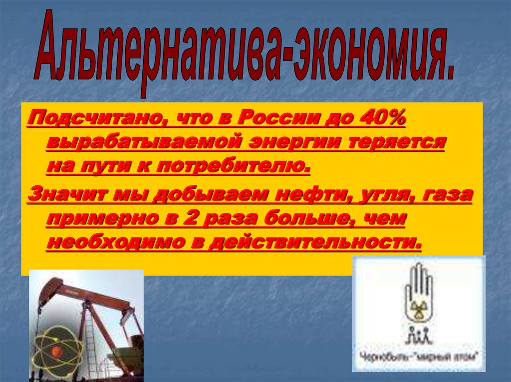 Подсчитано, что в России до 40%вырабатываемой энергии теряется