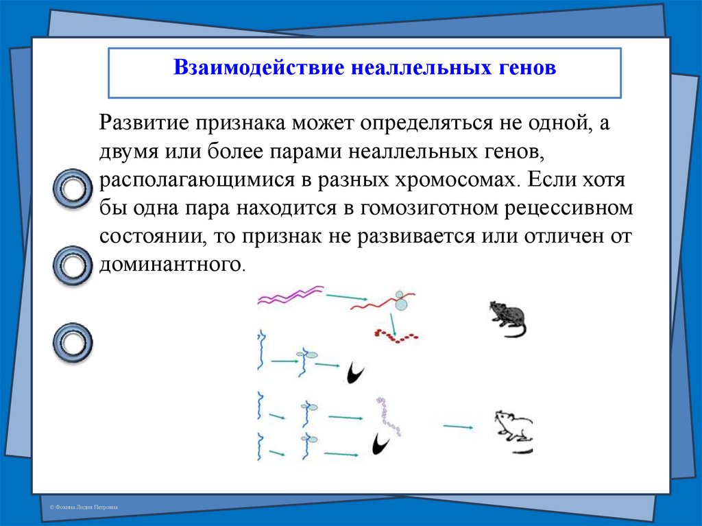 Взаимодействие неаллельных геновРазвитие признака может определяться не одной, а