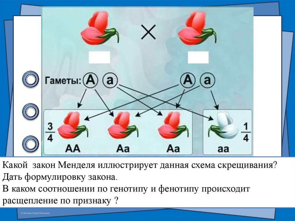 Какой закон Менделя иллюстрирует данная схема скрещивания?Дать формулировку закона.