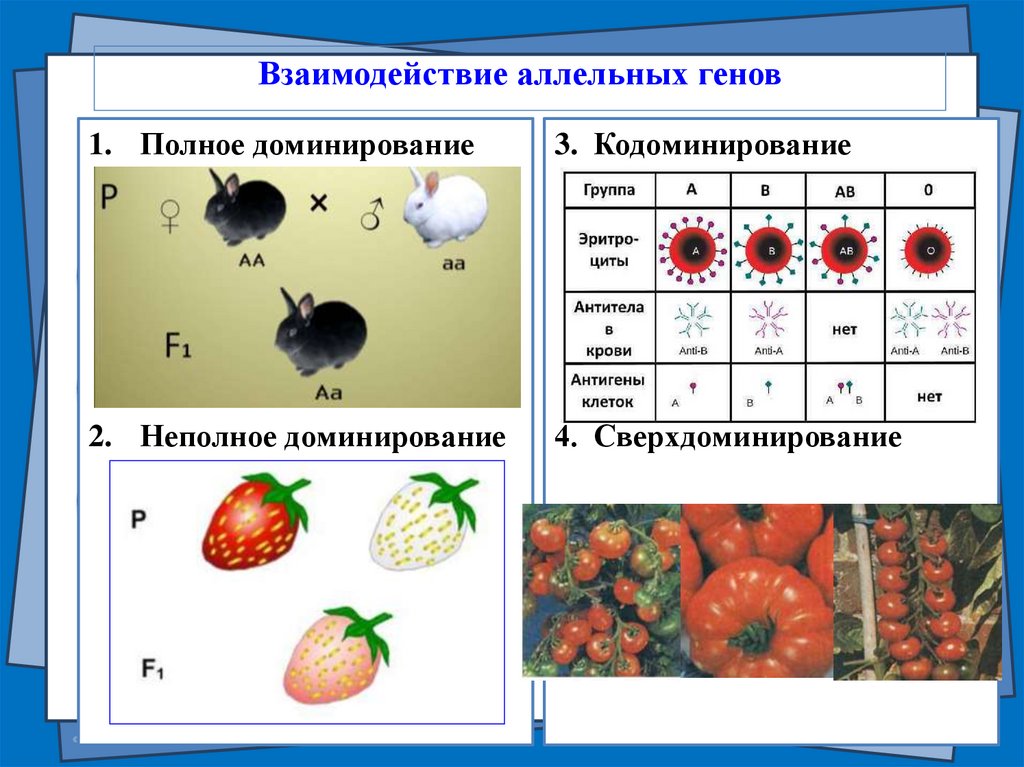 Взаимодействие аллельных генов1. Полное доминирование