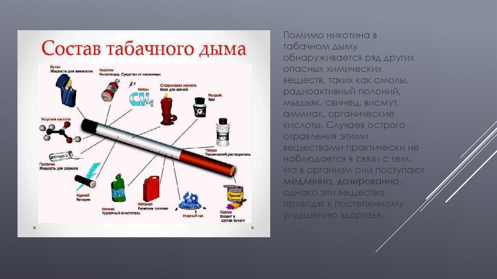 СОДЕРЖАЩИЙ БОЛЕЕ 7000 РАЗДРАЖАЮЩИХ ВЕЩЕСТВ, В ТОМ ЧИСЛЕ БОЛЕЕ