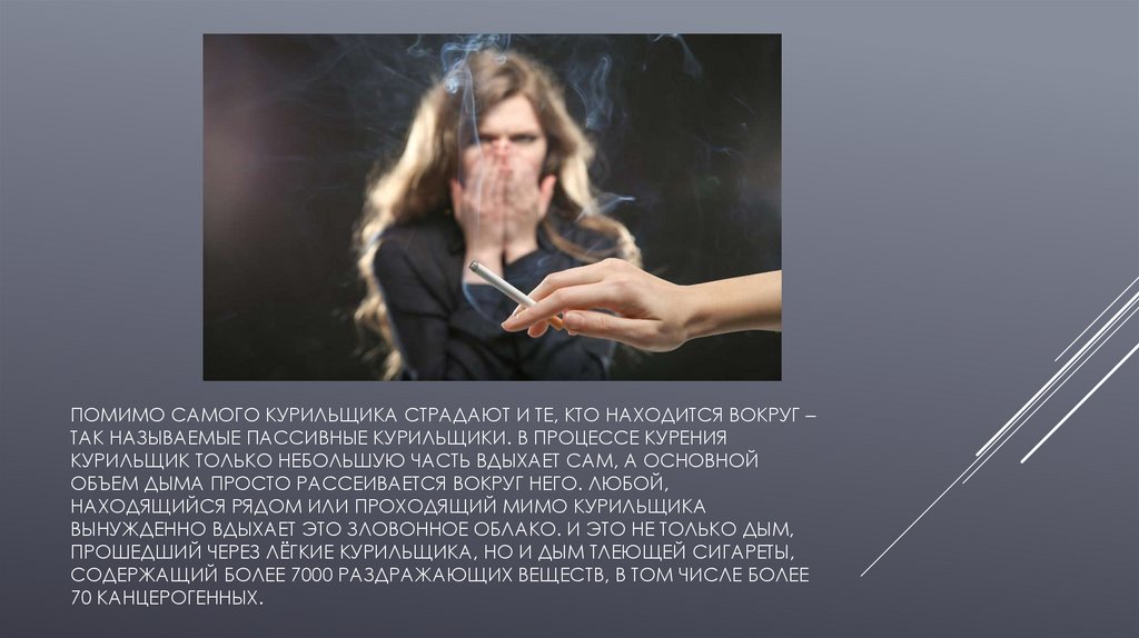 ПОМИМО САМОГО КУРИЛЬЩИКА СТРАДАЮТ И ТЕ, КТО НАХОДИТСЯ ВОКРУГ –ТАК НАЗЫВАЕМЫЕ ПАССИВНЫЕ КУРИЛЬЩИКИ. В ПРОЦЕССЕ КУРЕНИЯ