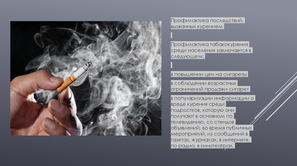 Всё это обуславливает определённые требования к профилактике курения. Сегодня