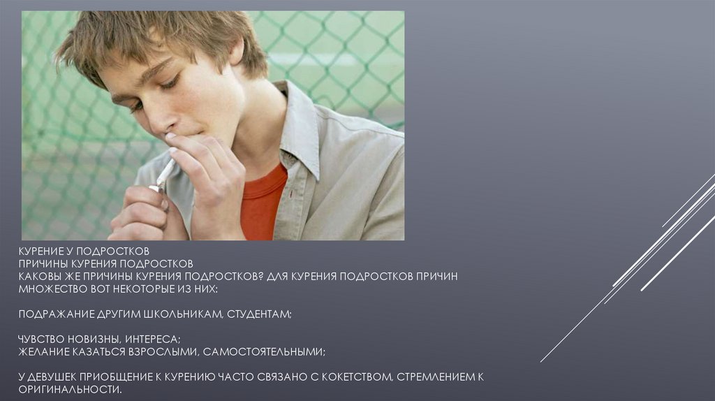 КУРЕНИЕ У ПОДРОСТКОВПРИЧИНЫ КУРЕНИЯ ПОДРОСТКОВ