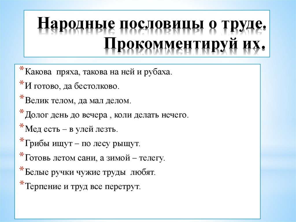 Народные пословицы о труде.Прокомментируй их.