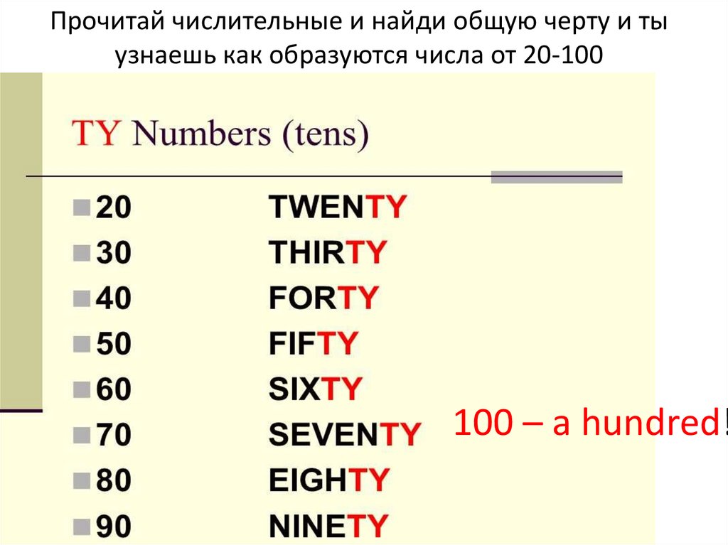 Прочитай числительные и найди общую черту и тыузнаешь как образуются числа от 20-100