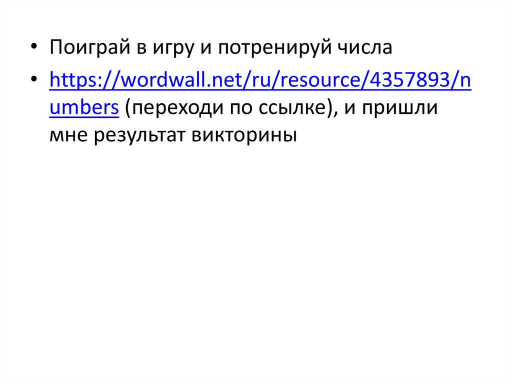 • Поиграй в игру и потренируй числа• https://wordwall.net/ru/resource/4357893/n