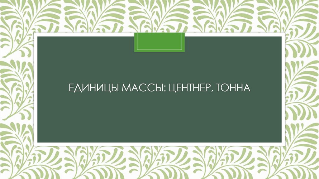 ЕДИНИЦЫ МАССЫ: ЦЕНТНЕР, ТОННА2.