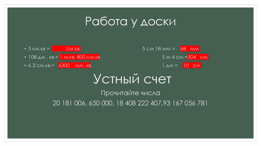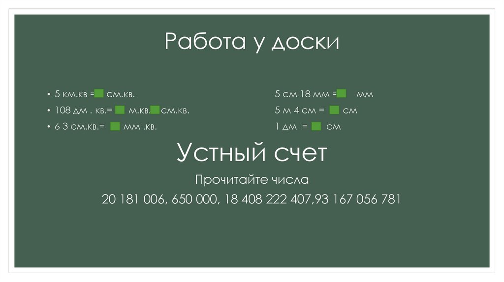 Работа у доски• 5 км.кв =