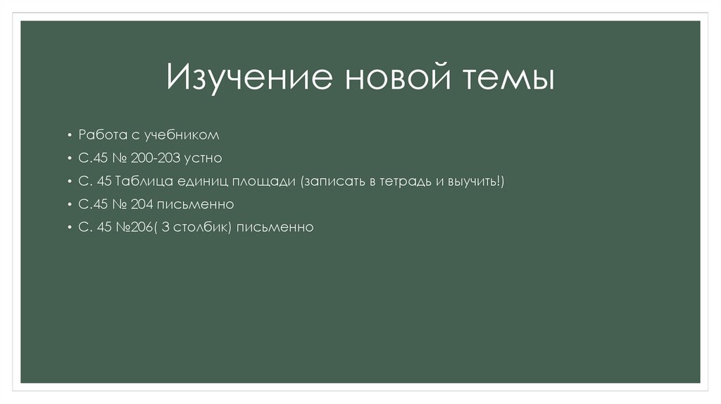 • С. 45 Таблица единиц площади (записать в тетрадь и выучить!)