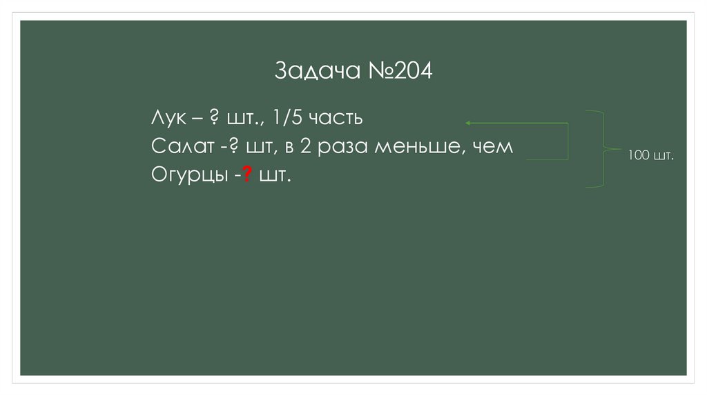 Задача №204Лук – ? шт., 1/5 часть