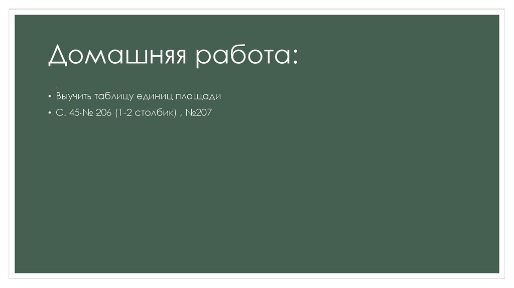 Домашняя работа:• Выучить таблицу единиц площади