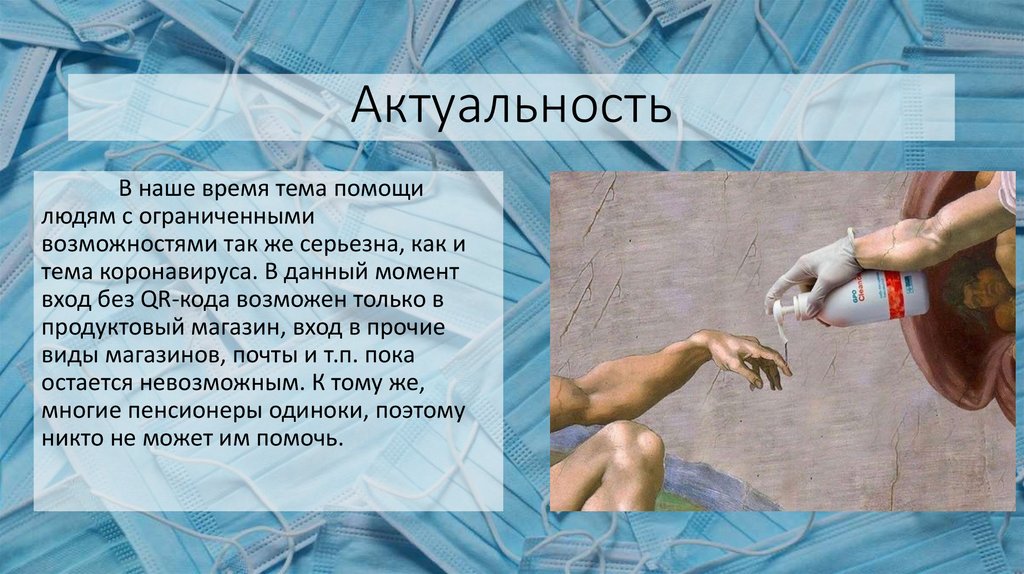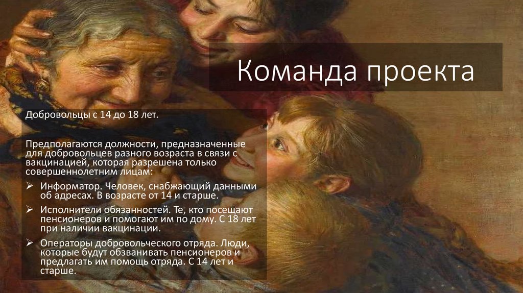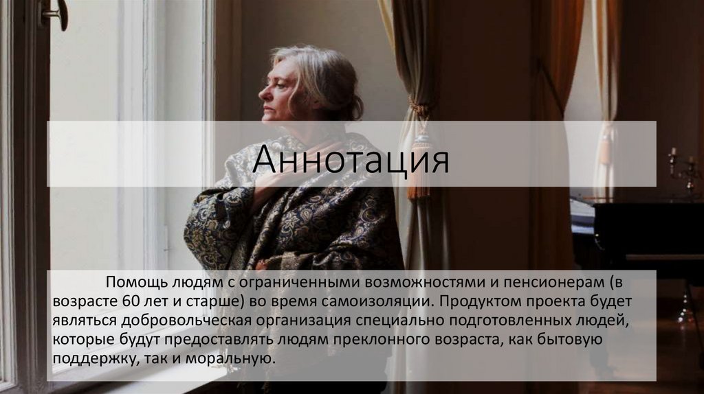 возрасте 60 лет и старше) во время самоизоляции. Продуктом проекта будет