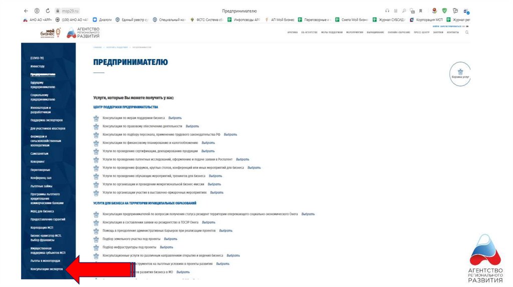 О получении услуг Агентства регионального развития (для предпринимателей)