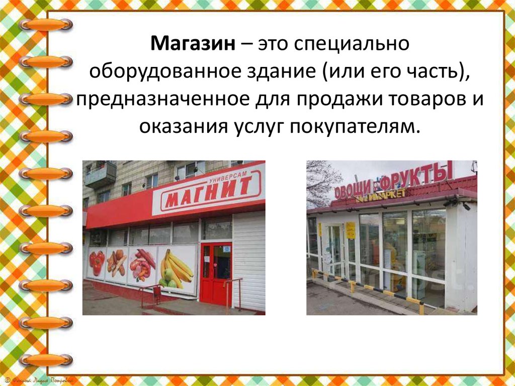 Магазин – это специальнооборудованное здание (или его часть),