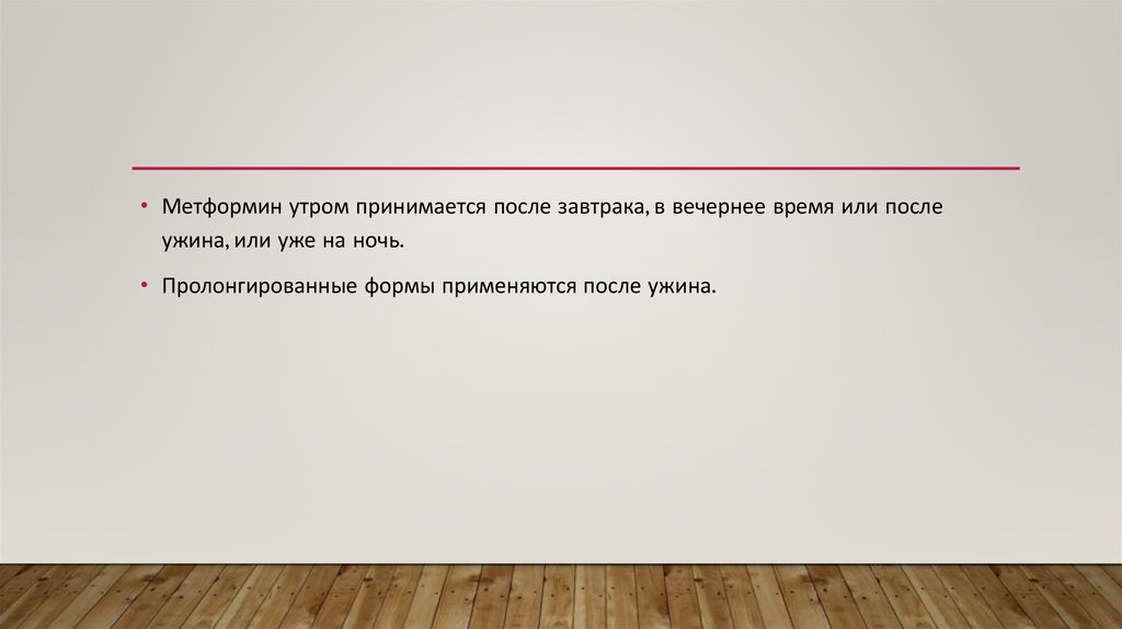 • Метформин утром принимается после завтрака, в вечернее время или послеужина, или уже на ночь.