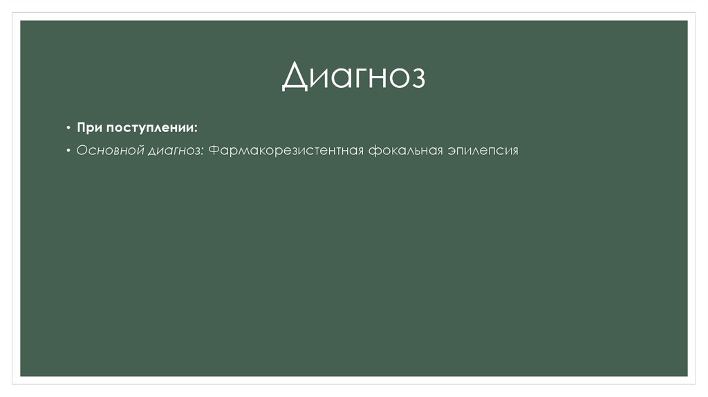 • Основной диагноз: Фармакорезистентная фокальная эпилепсия